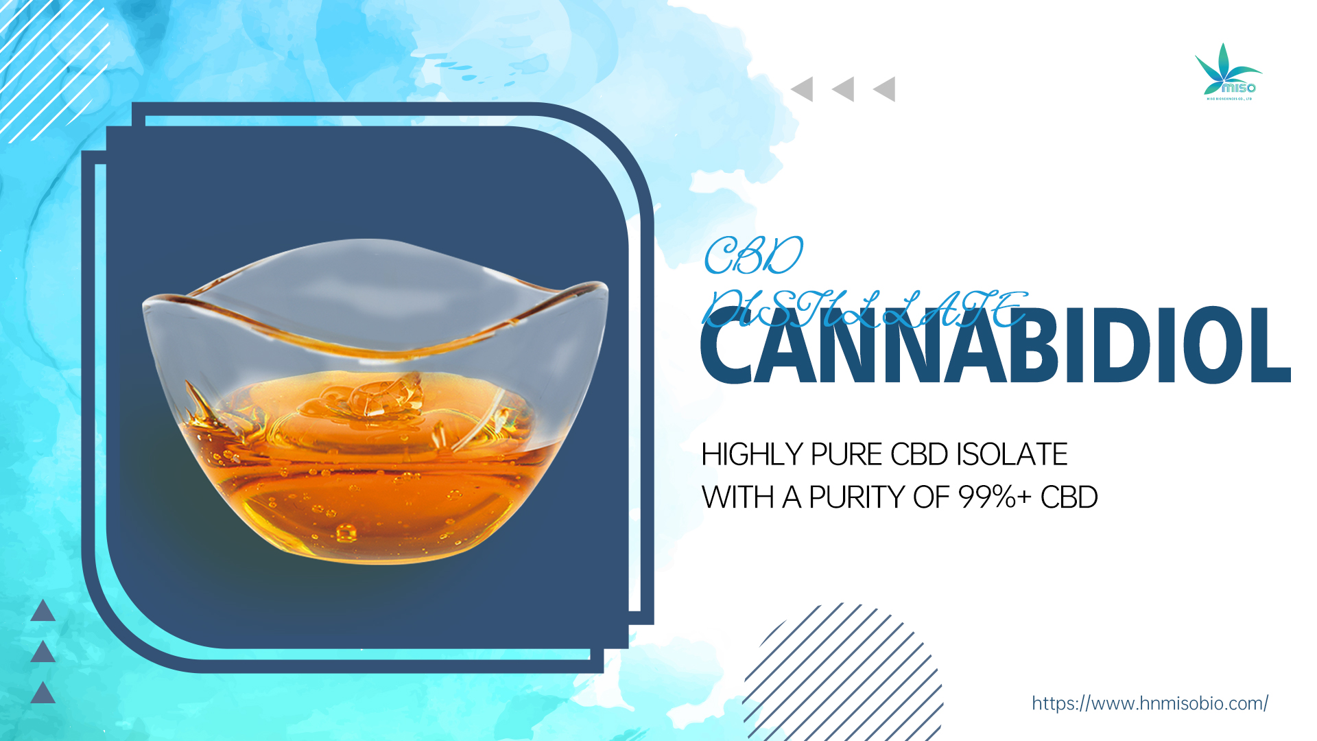 THC free broad spectrum CBD oil from MISO Bio is extracted from industrial hemp plant with newest World Unique extraction technology -HSCCC technology. It can better control the quality and purity, expand the productivity. Since not all people can accept THC contained products, even it is within the legal line 0.3%. Hence broad spectrum oil is still competitive.