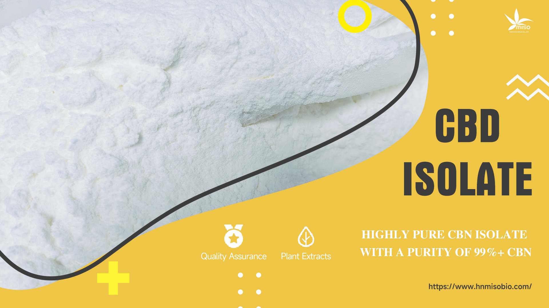 Cannabidiol (CBD) is a substance extracted from hemp or cannabis plant.Cannabidiol (CBD) from MISO Bio is from hemp plant planted by our own factory. We have planting area as large as 8 million square meters.It promise us sufficient raw material resources every year. More to the point, our CBD isolate is extracted by the Newest World Unique extraction technologyHSCCC technology which enjoys high purity and quality.