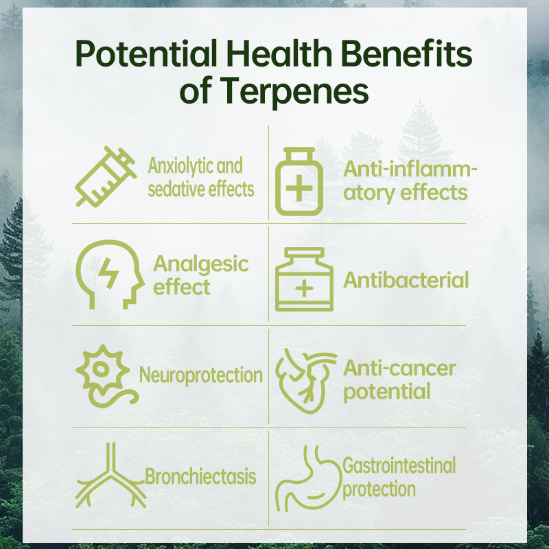 Neuroprotective effects: The anti-inflammatory and antioxidant properties of terpenes may offer protective effects on the nervous system, potentially helping to prevent neurodegenerative diseases.