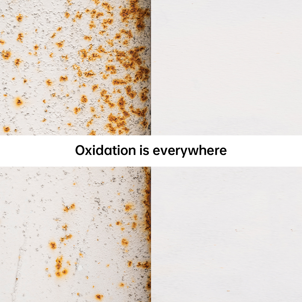 This process of "theft" is called oxidation. The most intuitive examples are a sliced apple turning brown and shriveled when exposed to air, or an iron nail rusting outdoors. Under the influence of UV rays, pollution, and stress, our skin undergoes a similar "oxidative" process—it just happens more slowly and invisibly.